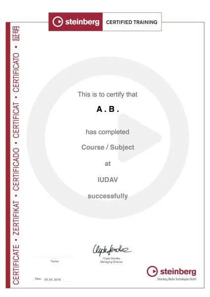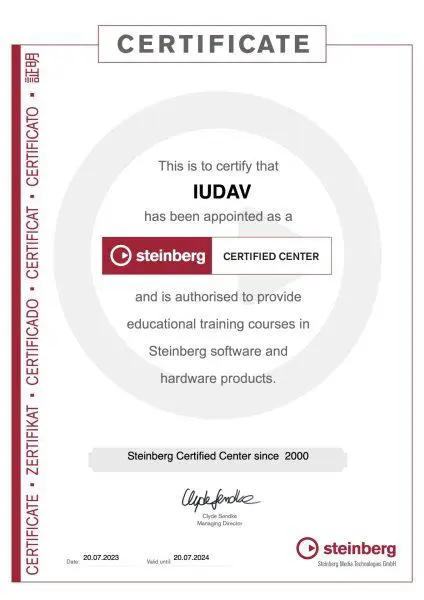 IUDAV è riconosciuto come Steinberg Certified Center. Il nostro centro è stato selezionato e autorizzato direttamente da Steinberg per garantire che gli studenti vengano formati da personale esperto, con una vasta conoscenza dei prodotti Steinberg e delle loro funzionalità, con un alto livello di competenza e supporto tecnico qualificato.